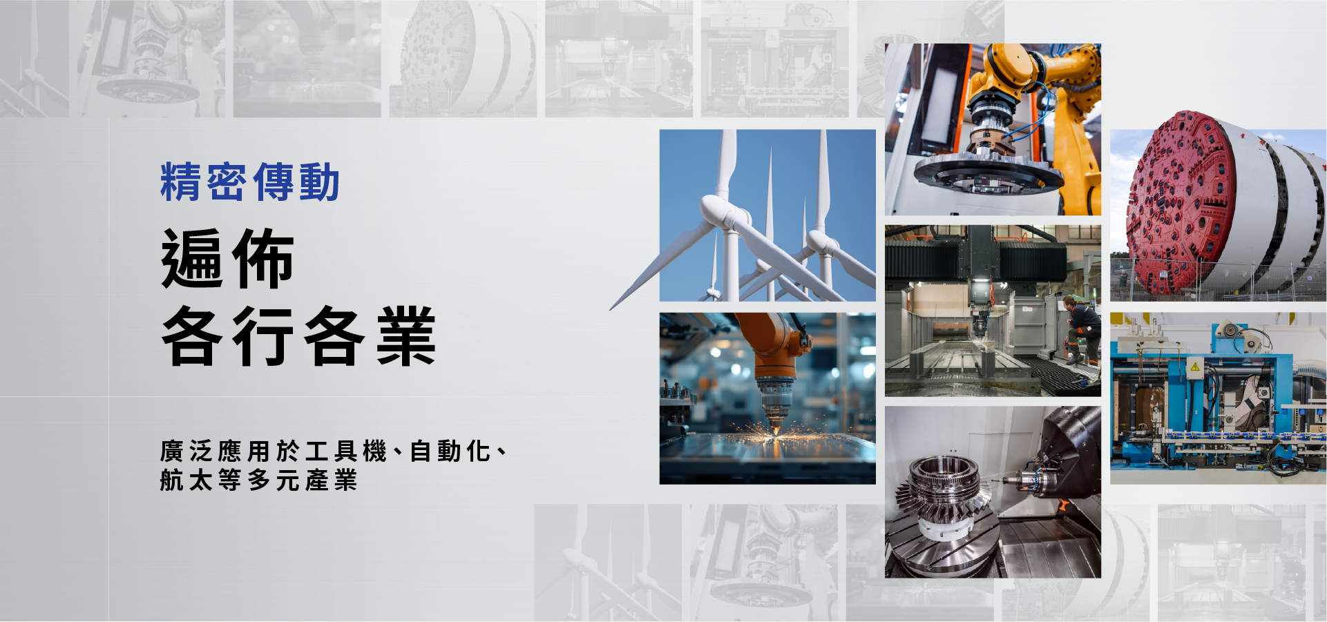 產品廣泛應用於工具機、自動化、風電、航太、物流設備等產業,並出口至全球 30 多個國家,深受客戶信賴。
